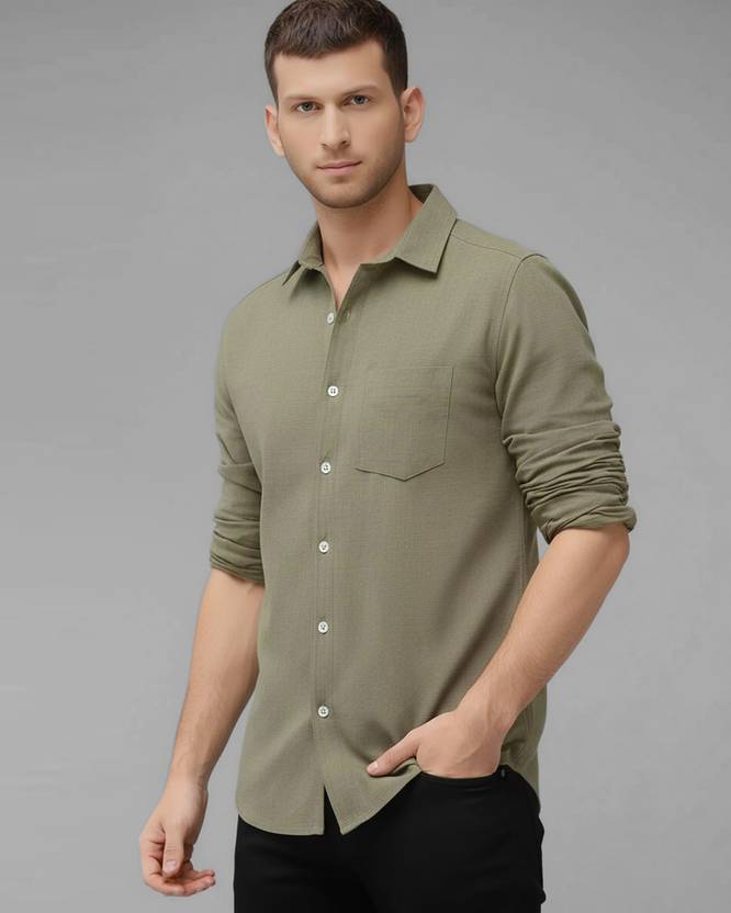Men Regular Fit Solid Spread Collar Casual Shirt