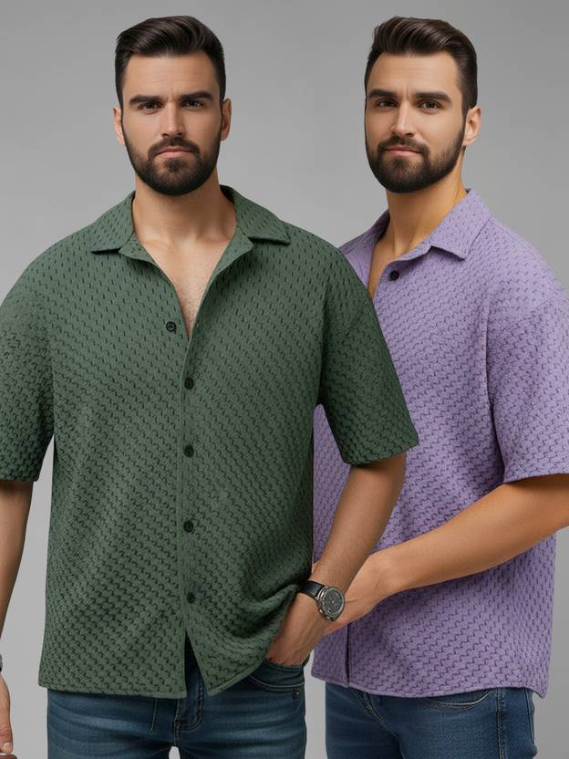 Men Regular Fit Solid Spread Collar Casual Shirt (Pack of 2)