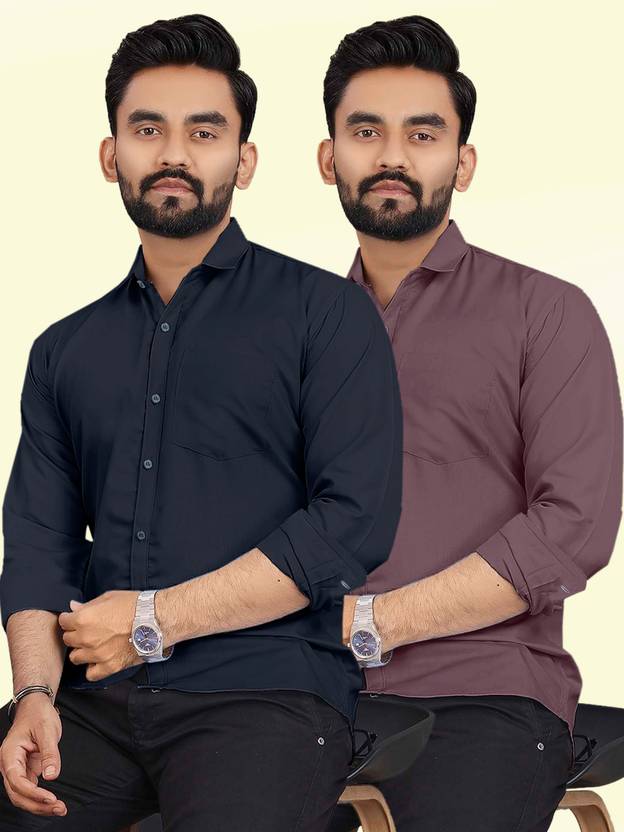 Men Regular Fit Solid Spread Collar Casual Shirt (Pack of 2)