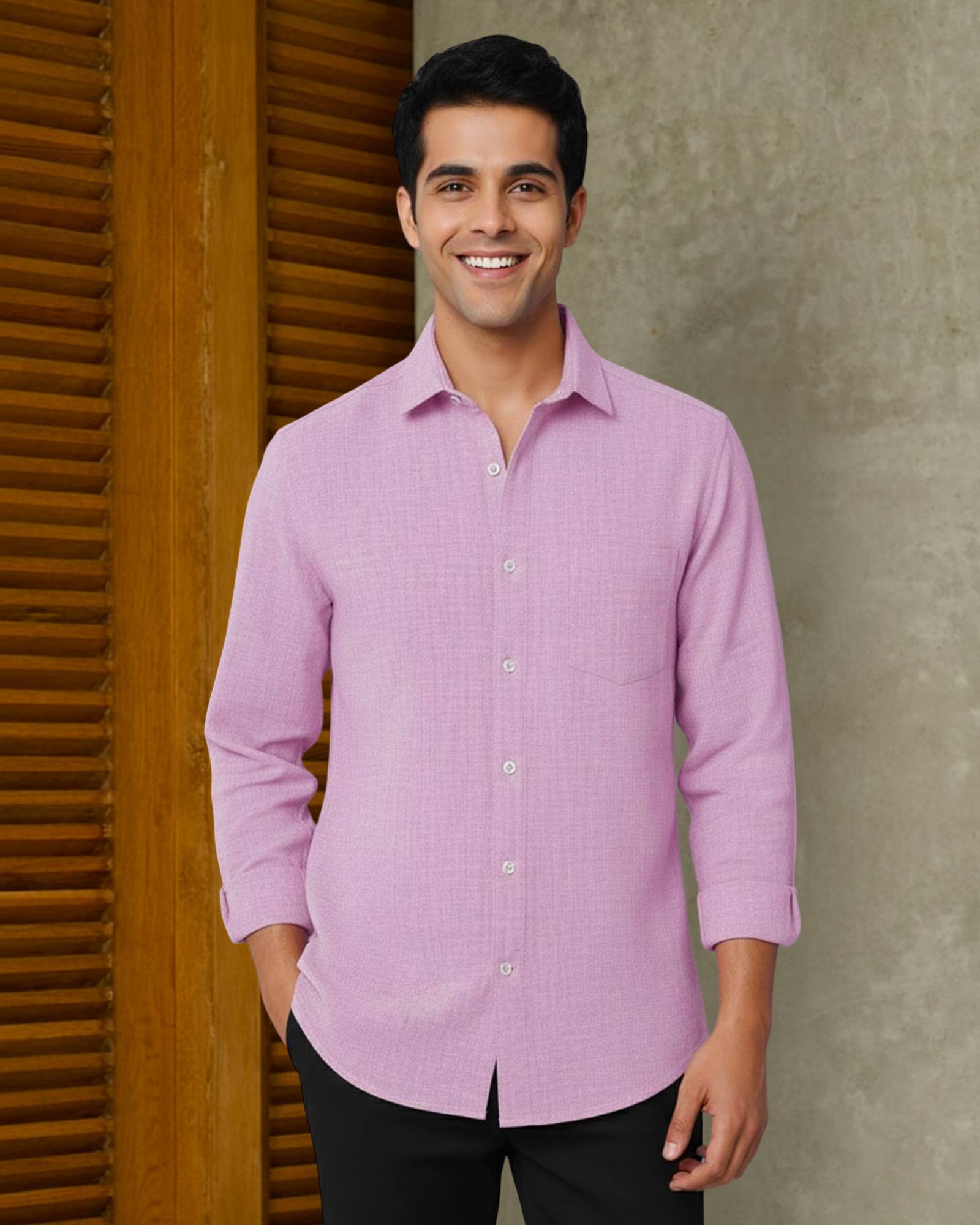 Men Regular Fit Solid Spread Collar Casual Shirt