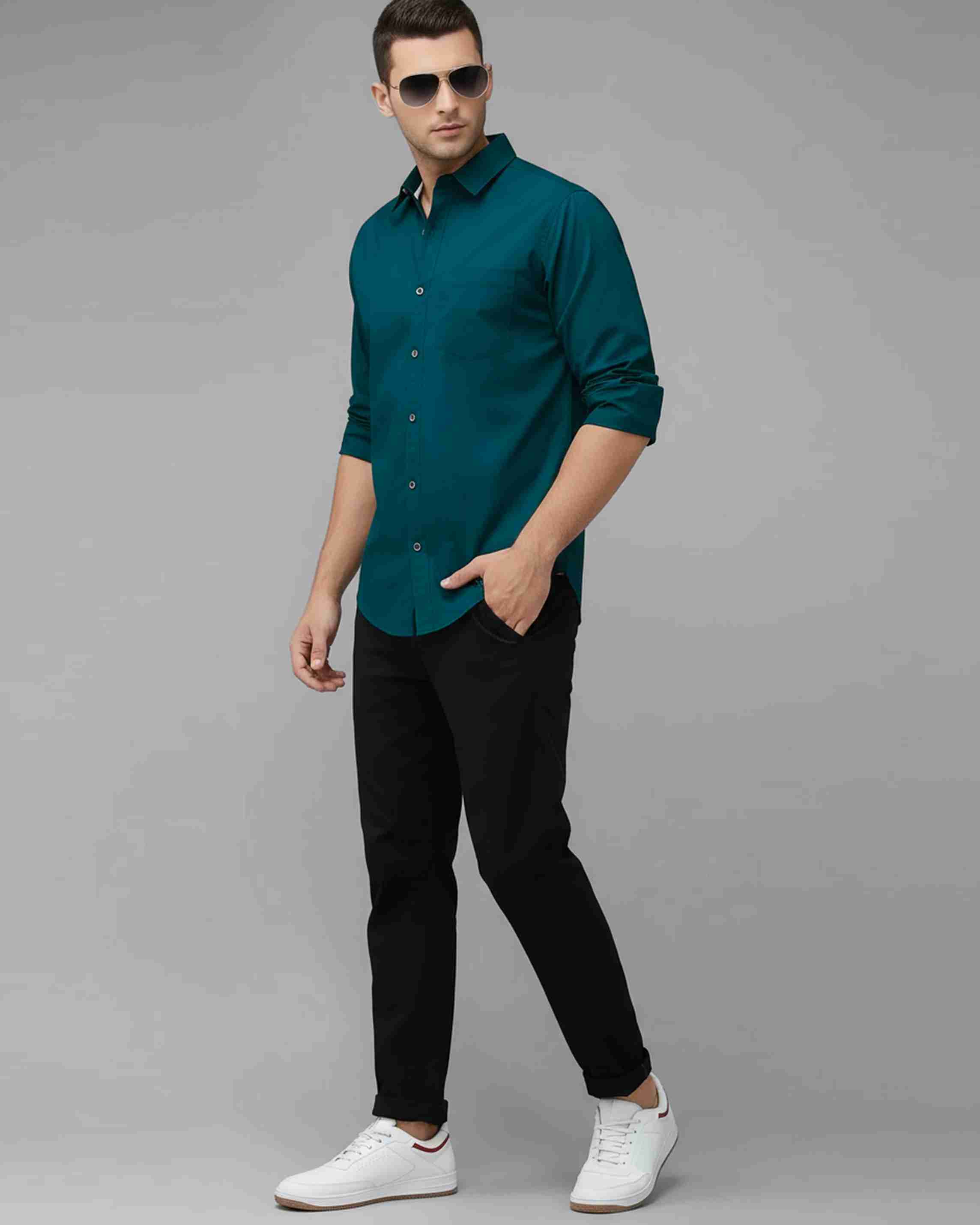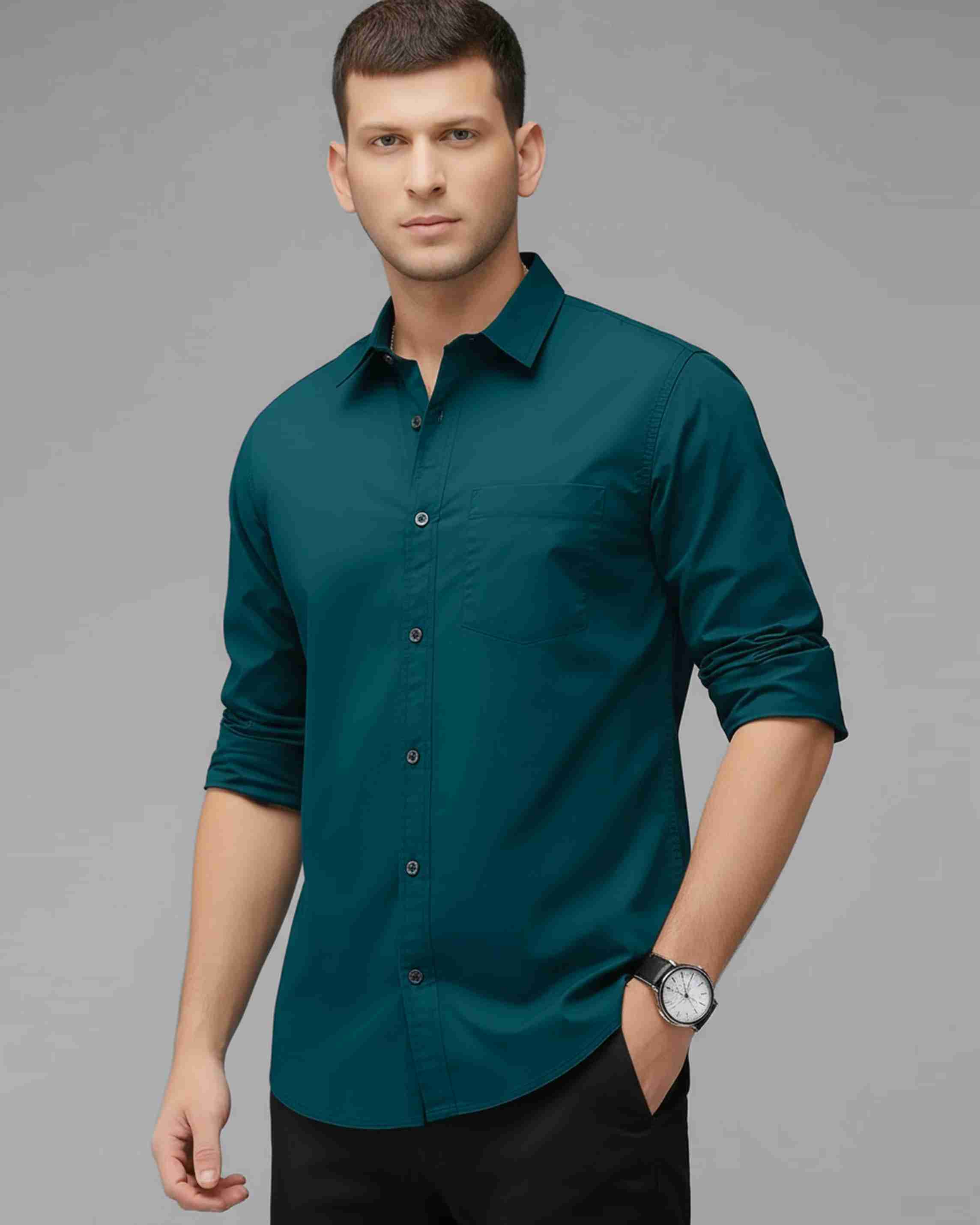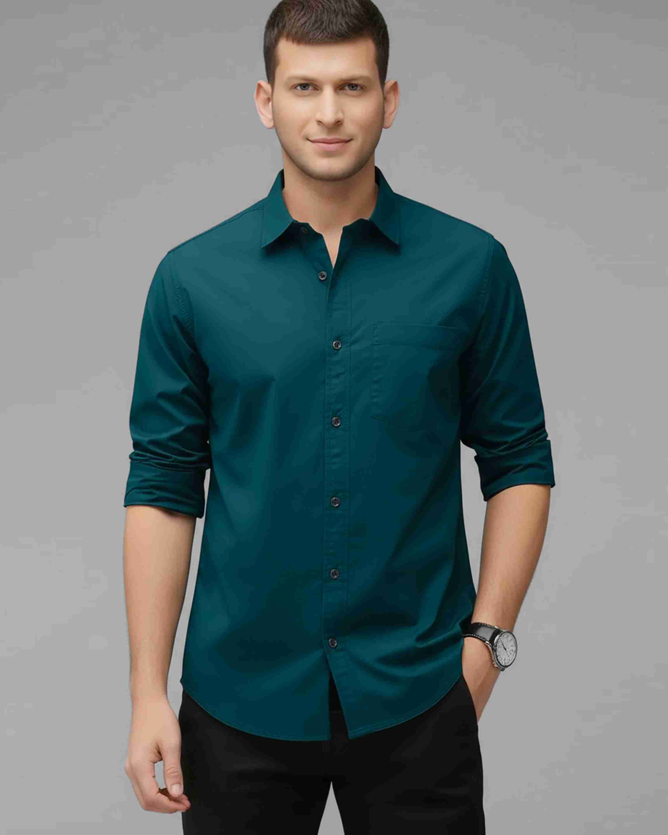 Men Regular Fit Solid Spread Collar Casual Shirt