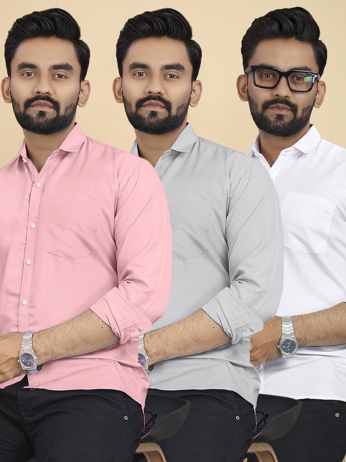 METRONAUT Men Regular Fit Solid Spread Collar Casual Shirt  (Pack of 3)