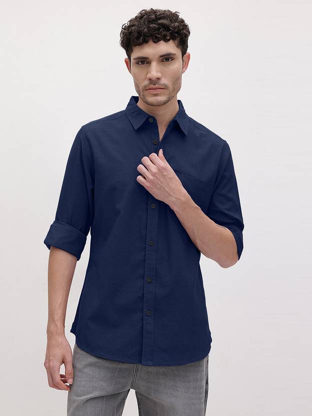 Men Regular Fit Solid Spread Collar Casual Shirt