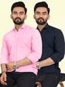 Men Regular Fit Solid Spread Collar Casual Shirt (Pack of 2)