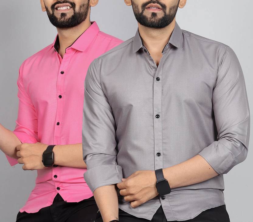 METRONAUT Men Solid Casual Pink, Grey Shirt (Pack of 2)
