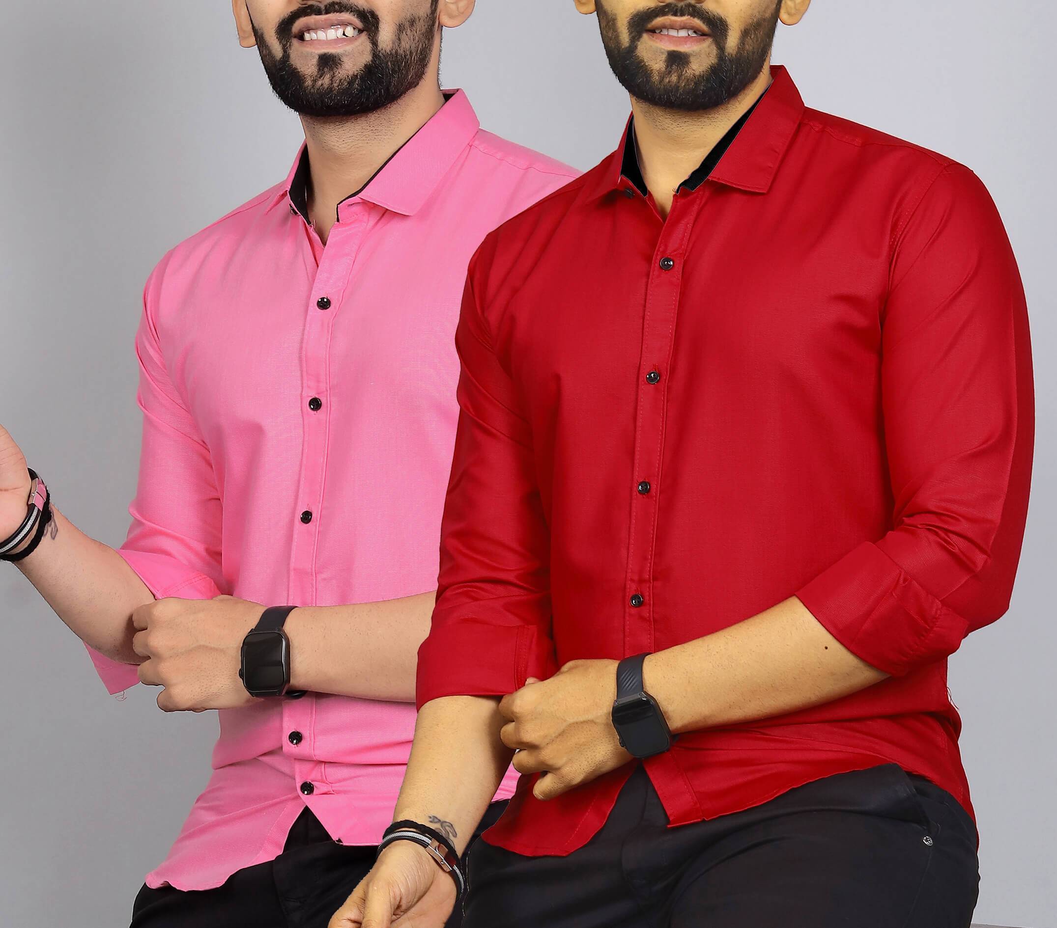 METRONAUT Men Regular Fit Solid Spread Collar Casual Shirt (Pack of 2)