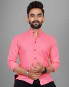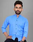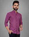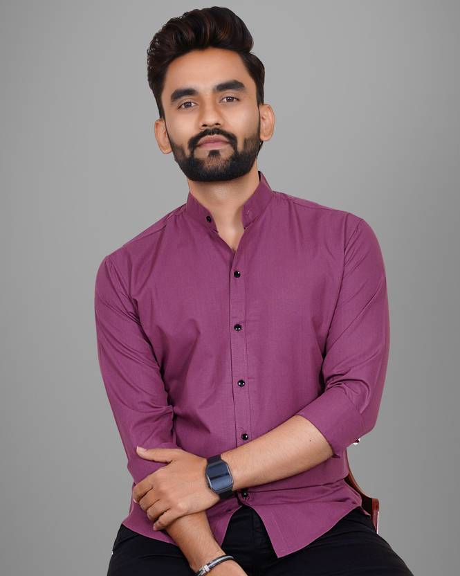 Men Regular Fit Solid Mandarin Collar Casual Shirt