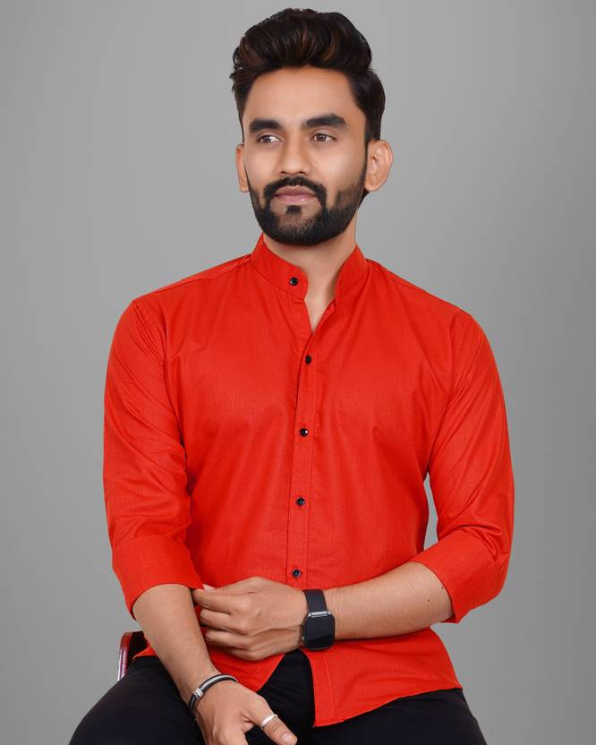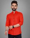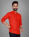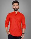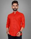 Men Regular Fit Solid Mandarin Collar Casual Shirt
