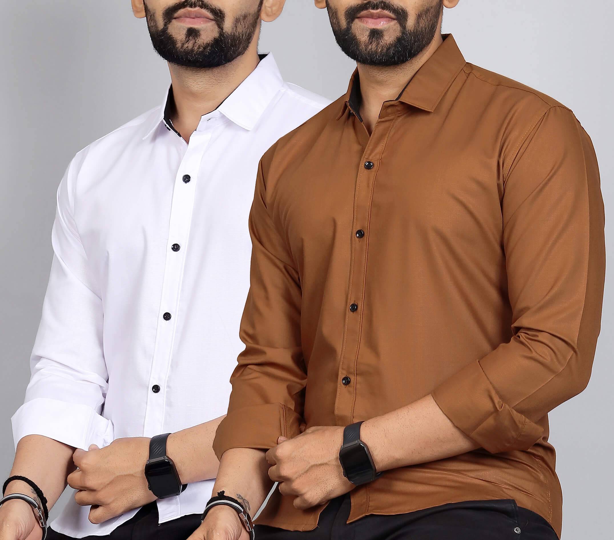 METRONAUT Men Regular Fit Solid Spread Collar Casual Shirt (Pack of 2)