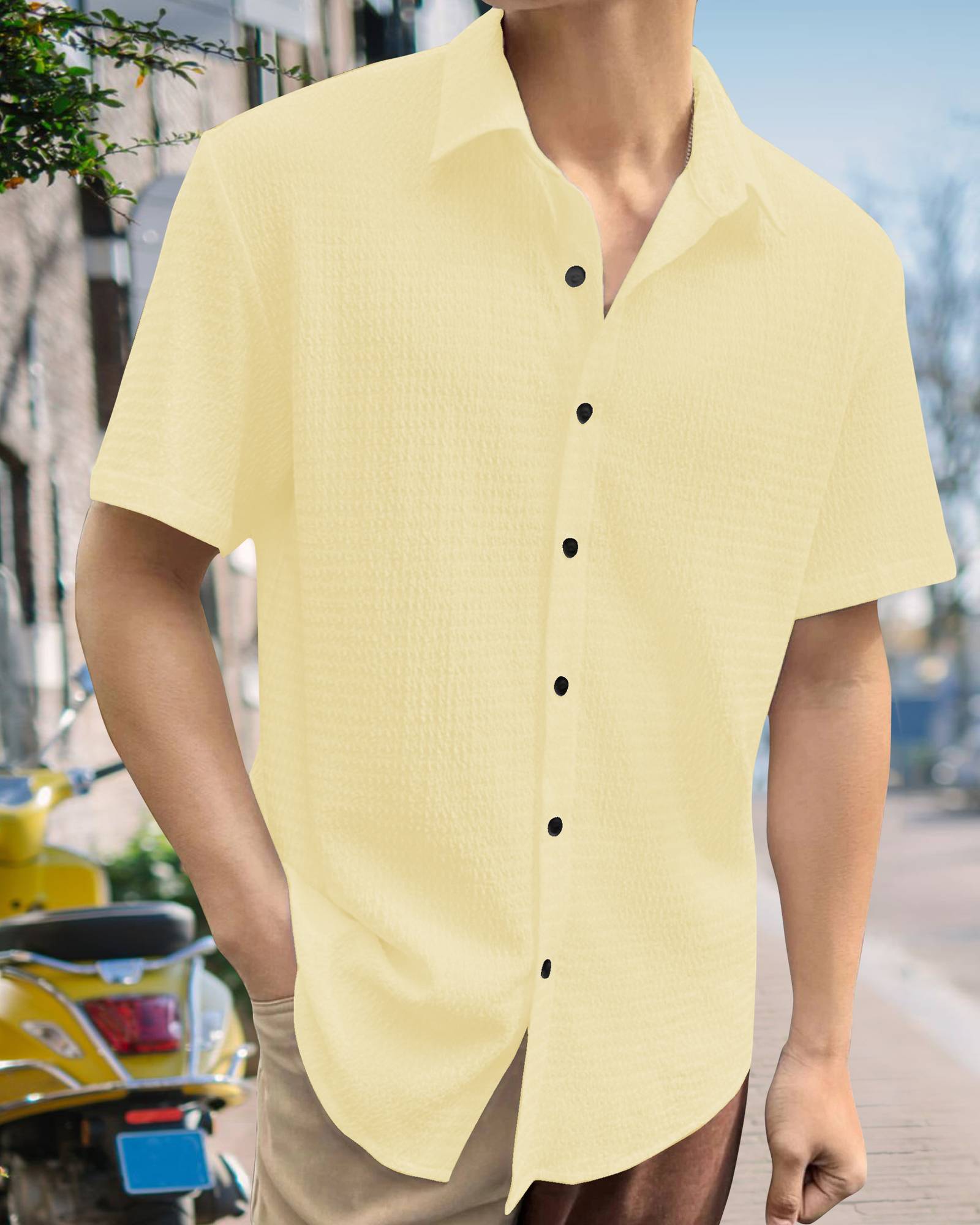 METRONAUT Men Solid Casual Yellow Shirt