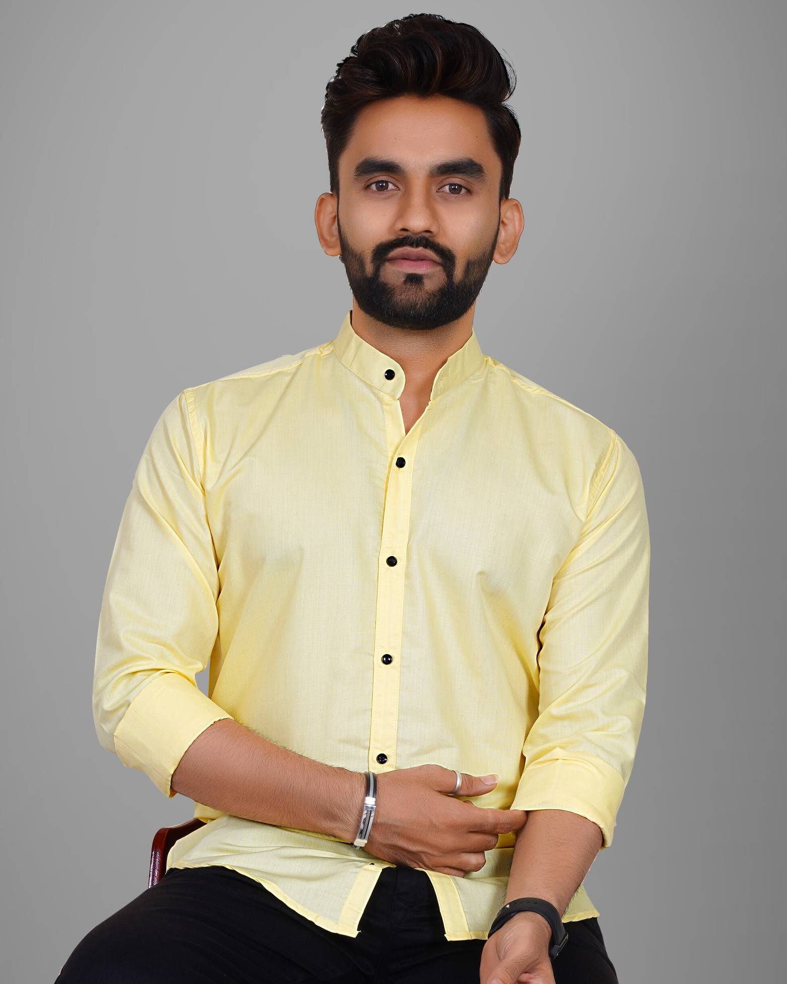Elevate your casual wardrobe with the Metronaut Yellow solid shirt, designed exclusively for men who appreciate both comfort and style. Crafted from a soft and breathable cotton blend fabric, this shirt ensures all-day ease and durability. Featuring a hip-length cut and full sleeves, this shirt offers a modern yet relaxed fit. The Mandarin collar enhances its classic appeal.