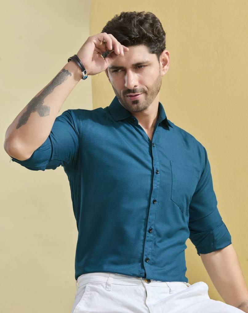 Slay your daily style in this piece . It is sure to get you several compliments and make you look chic as ever. This casual shirt made from cotton fabric. It exibited full sleeves and Slim collar. Pair it with shoes and a sleek watch to complete the look. Machine wash this with similar color., Double-stitched seams for added strength., Reinforced buttons and buttonholes to prevent wear and tear., Single or split yoke on the back for better fit and movement., Standard placket – Visible strip where buttons are sewn., French placket – Clean look without visible stitching.