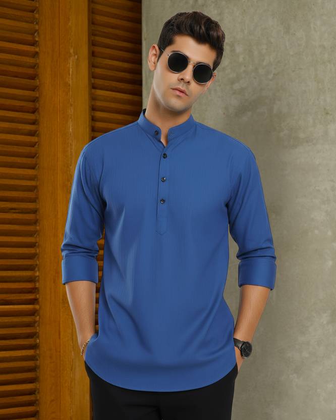 Men Solid Cotton Blend High Low Kurta (Multicolor)