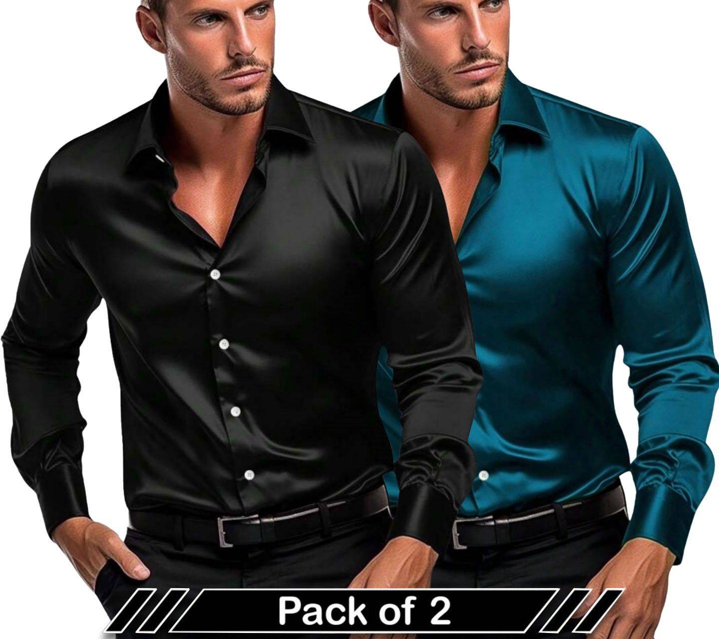 METRONAUT Men Solid Party Multicolor Shirt (Pack of 2)