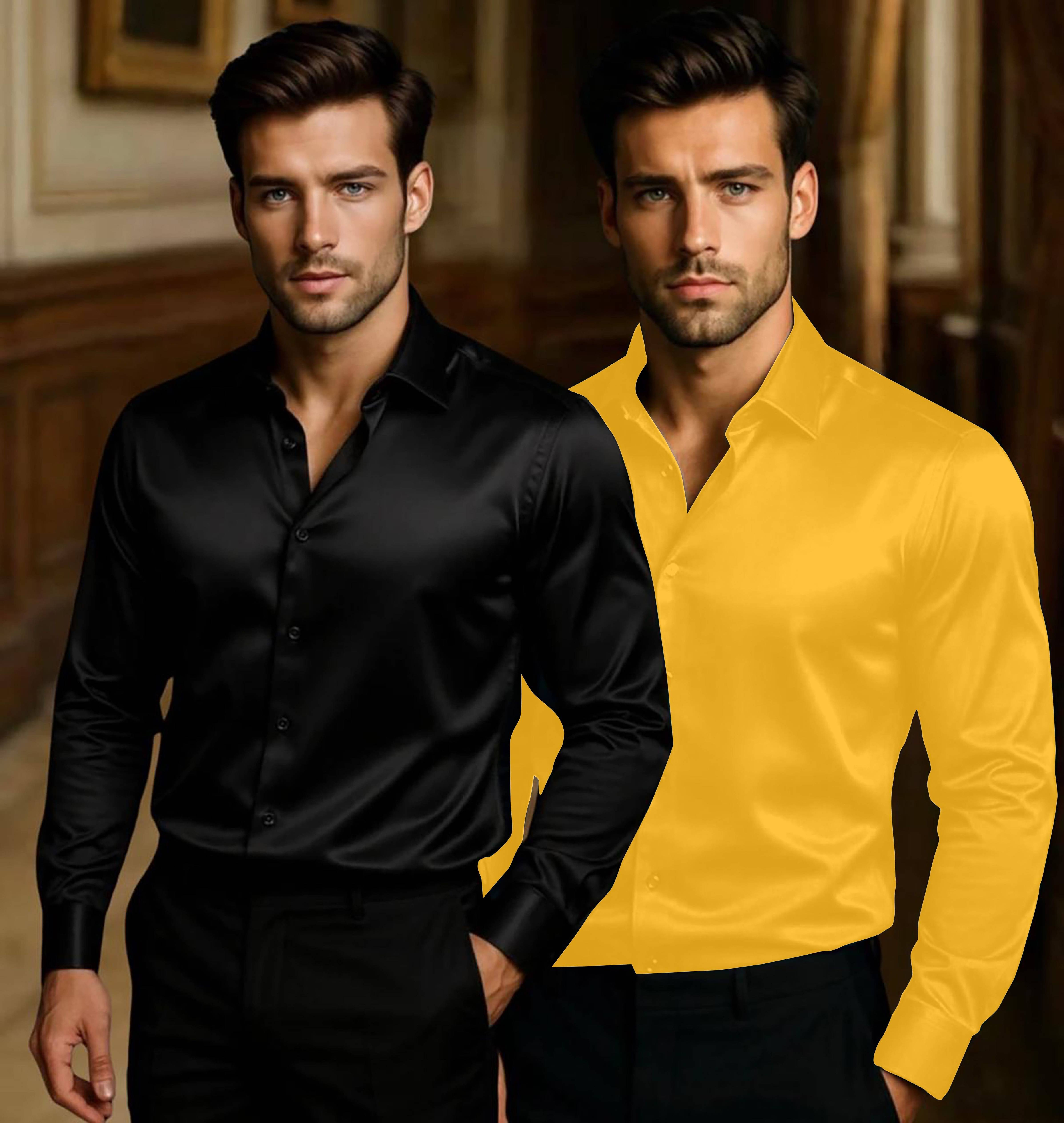 METRONAUT Men Solid Party Black, Yellow Shirt (Pack of 2)