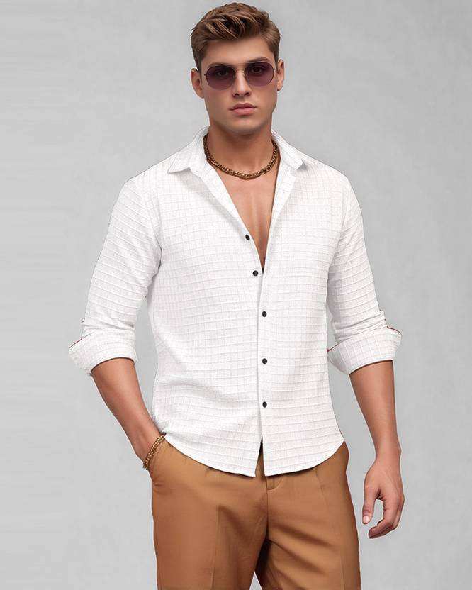 METRONAUT Men Regular Fit Solid, Self Design Spread Collar Casual Shirt
