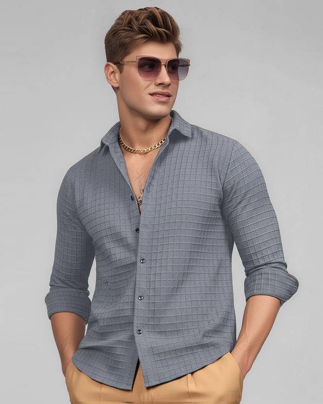 METRONAUT Men Regular Fit Solid, Self Design Spread Collar Casual Shirt