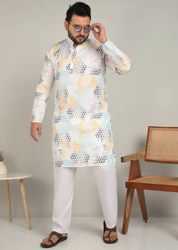 METRONAUT PLUS Men Printed A-line Kurta (Yellow)