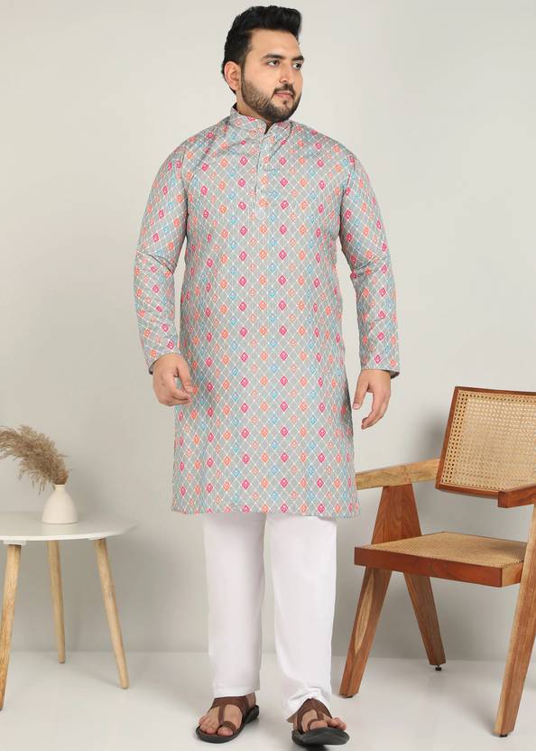 METRONAUT PLUS Men Printed A-line Kurta (Grey)