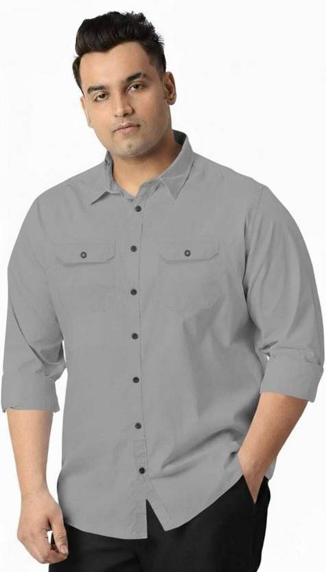 METRONAUT PLUS Men Solid Casual Grey Shirt