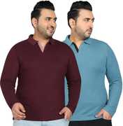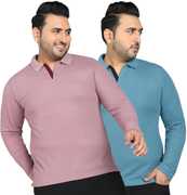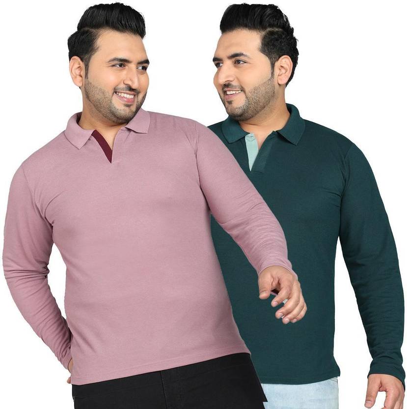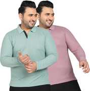 METRONAUT PLUS Solid Men Polo Neck Pink, Dark Green T-Shirt