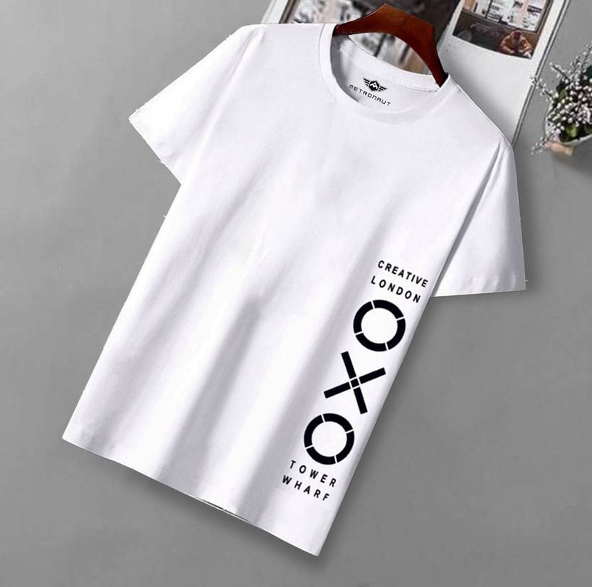 METRONAUT Printed Men Round Neck Cotton Blend White T-Shirt