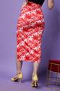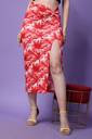 Metronaut Casual Women Red Abstract Print Twist Knot Long Slit Midi Pencil Skirt