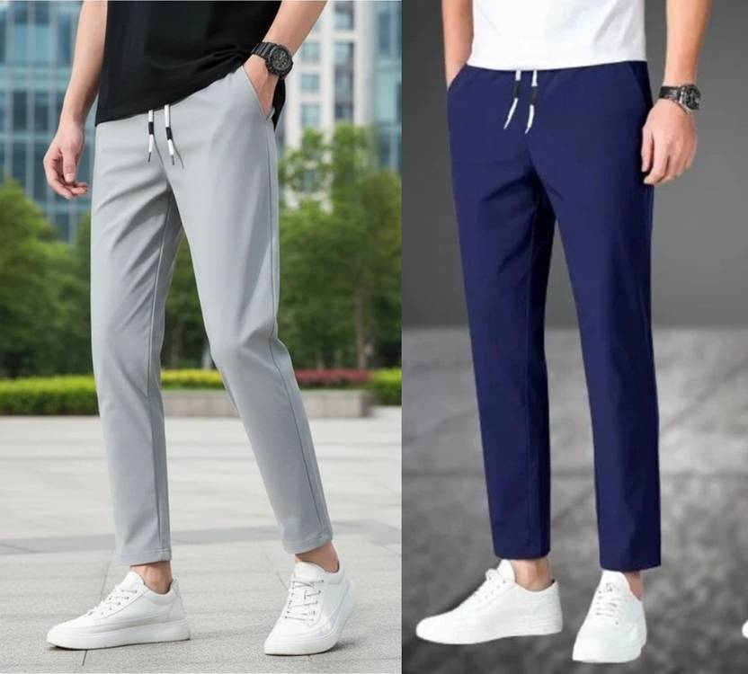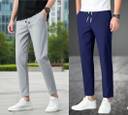 Pack of 2 Solid Men Grey, Dark Blue Track Pants