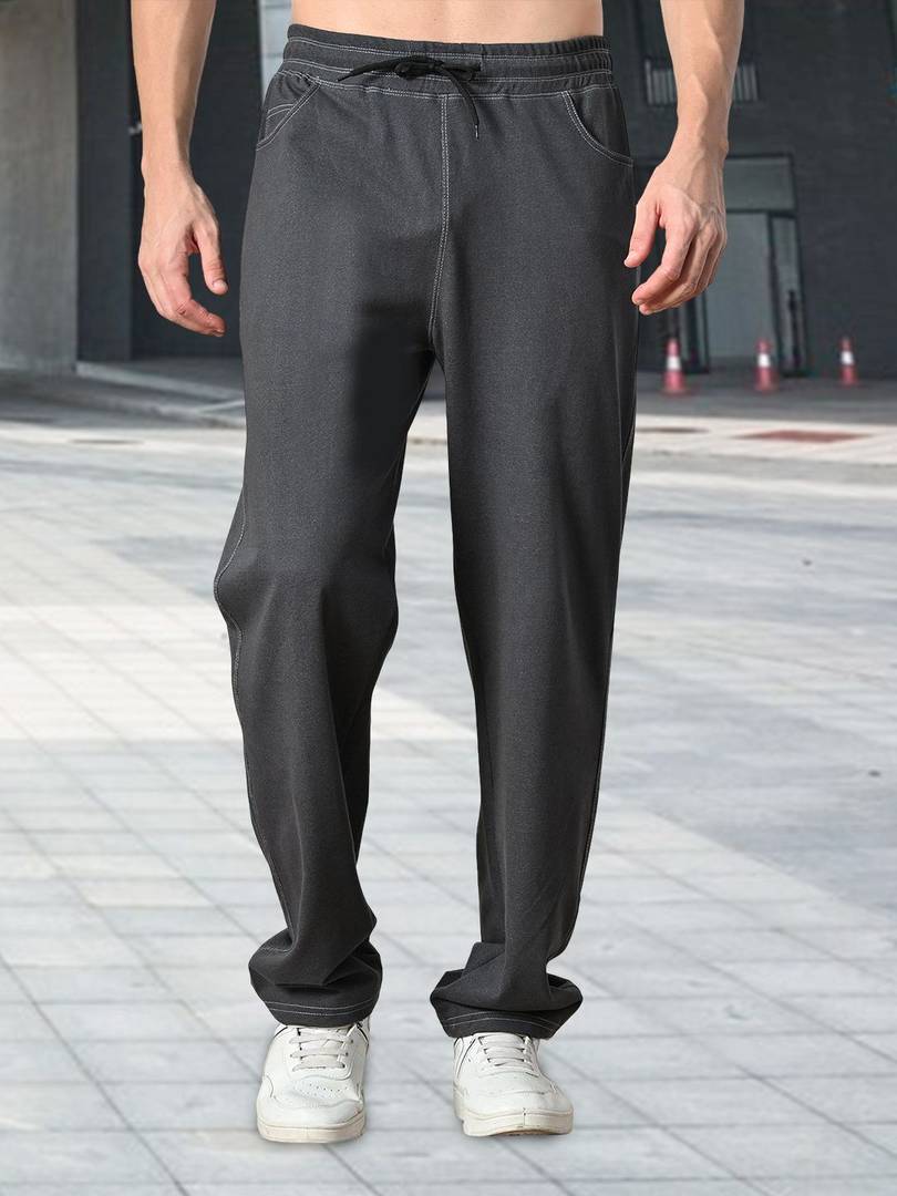 Upgrade your casual wear with these men's denim track pants, combining the rugged look of denim with the comfort of joggers. Crafted from a soft, stretchable denim fabric, they offer a relaxed fit with excellent mobility. Featuring an elastic waistband with drawstring, side pockets, and ribbed cuffs, these pants are perfect for workouts, travel, or everyday wear. Stylish and functional, they pair easily with tees or hoodies for a laid-back yet trendy look.