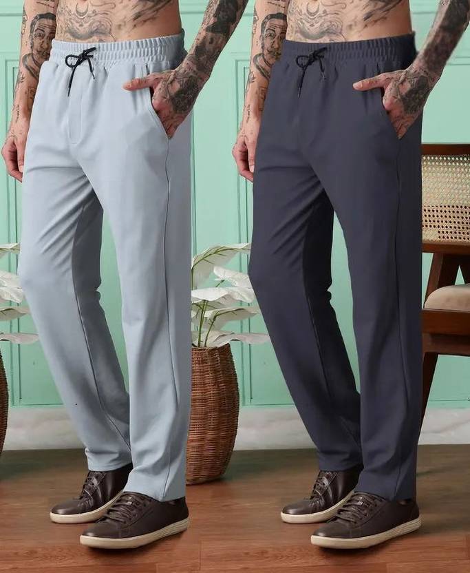 Pack of 2 stretchable men’s track pants with pockets — perfect for gym, sports, or casual wear.