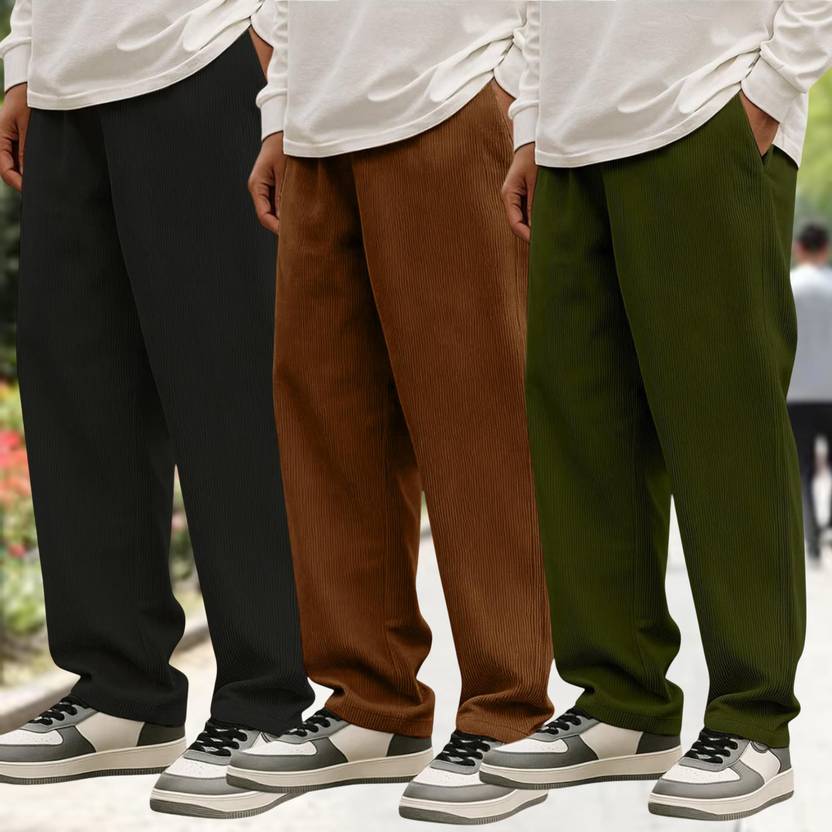 Upgrade your everyday style with these Men’s Solid Relaxed Fit Pants. Crafted from premium soft corduroy fabric, these trousers combine modern streetwear aesthetics with maximum comfort. The relaxed fit allows easy movement, while the elastic waistband with adjustable drawstring ensures a perfect fit. Designed with functional side pockets, these pants are ideal for casual wear, travel, lounging, or daily errands. Pair them with hoodies, sweatshirts, or sneakers for a trendy, laid-back look.
