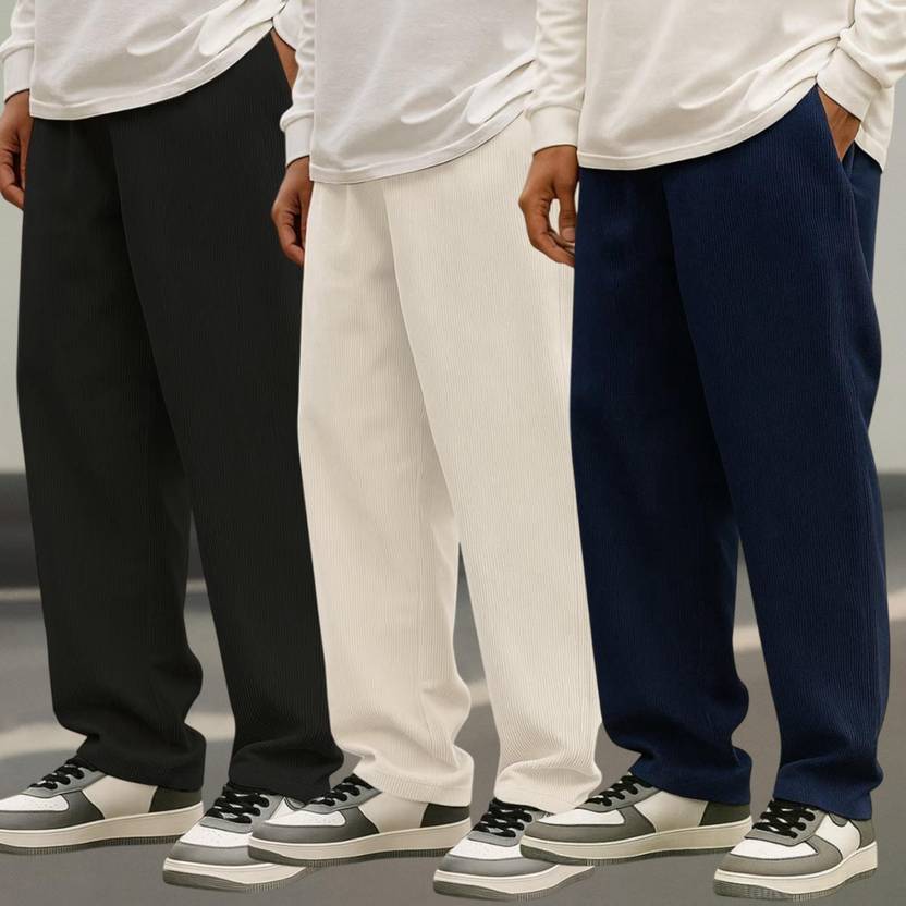 Pack of 3 Solid Men Multicolor Track Pants