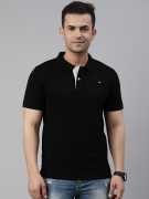 METRONAUT Solid Men Polo Neck Dark Blue T-Shirt