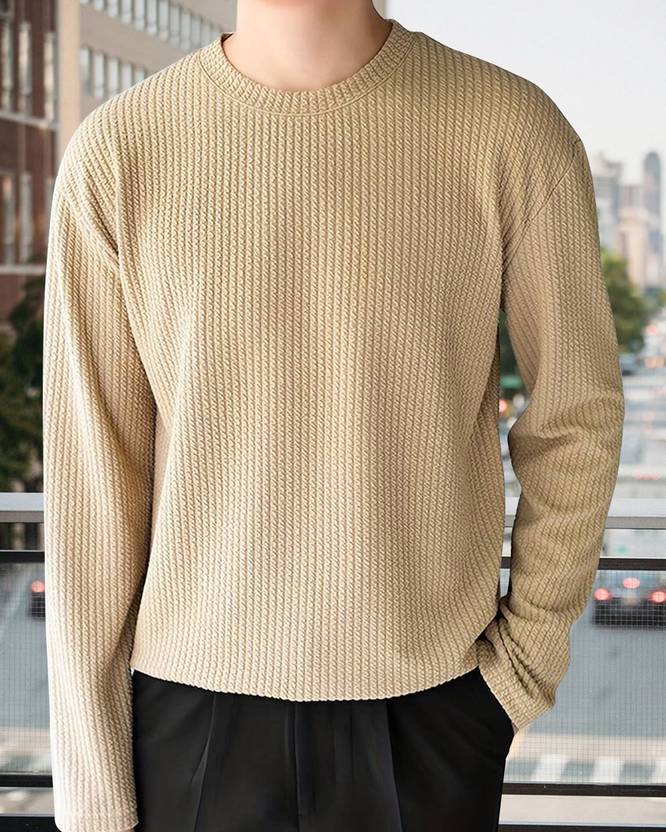 METRONAUT Solid Men Round Neck Beige T-Shirt