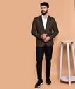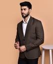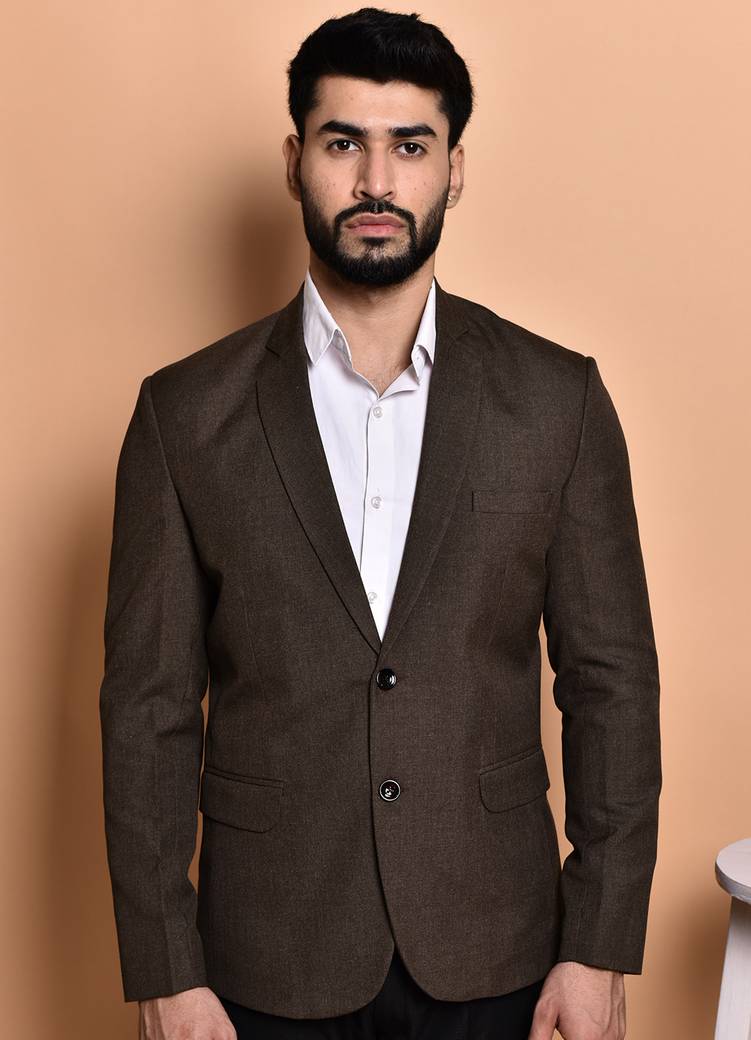 Men Solid Single Breasted Casual Blazer (Brown)