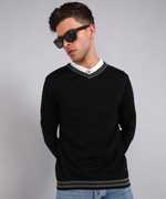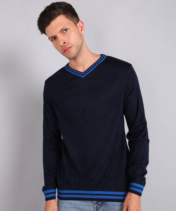 METRONAUT Solid V Neck Casual Men Blue Sweater