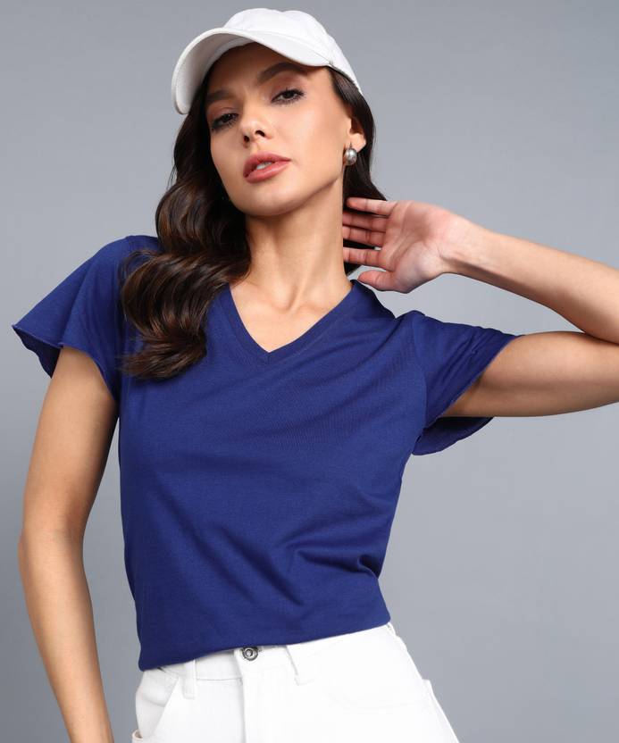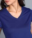 METRONAUT Solid Women V Neck Dark Blue T-Shirt