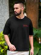 Typography Men Round Neck Pure Cotton Black T-Shirt