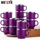 METSTIK Pack of 12 Plastic Small Size cup set, tea cup, coffee cup, steel cup (Purple, Cup Set)