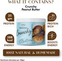 Discover the unbeatable taste of Crunchy Peanut Butter – a protein-packed, all-natural spread made from 100% roasted peanuts. With 25g of protein per 100g serving, this delicious, homemade peanut butter is the perfect energy-boosting snack for fitness enthusiasts and health-conscious individuals alike. It’s a rich source of essential nutrients, providing 38% of your daily magnesium, 10% iron, 25% vitamin B6, and 4% calcium, all while supporting heart health and overall well-being. Each spoonful delivers 50g of healthy fats, 20g of carbs, and 6g of dietary fiber, ensuring long-lasting fullness and satisfaction. Free from preservatives, added colors, and completely vegan, it’s the ideal choice for those seeking a nutritious, guilt-free treat. Low on the glycemic index and packed with antioxidants, Crunchy Peanut Butter also comes in a recyclable, eco-friendly jar to support sustainability. Enjoy this rich, satisfying spread on toast, in smoothies, or as an ingredient in your favorite recipes. Perfect for all ages, this 440g jar is a must-have for a healthy, energy-packed lifestyle. Try Crunchy Peanut Butter today and experience the perfect balance of taste, nutrition, and sustainability!