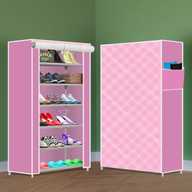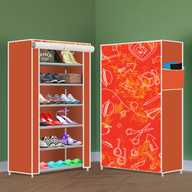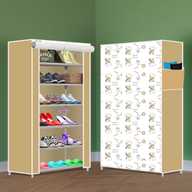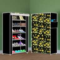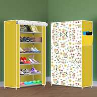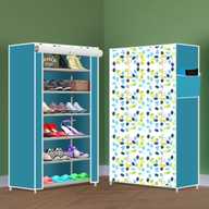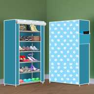 MEZIRE Collapsible Shoe Rack – Plastic 6 Tier Foldable Organizer for Home & Entry Use Plastic Collapsible Shoe Stand (Print Sky Blue, 6 Shelves, DIY(Do-It-Yourself))