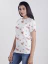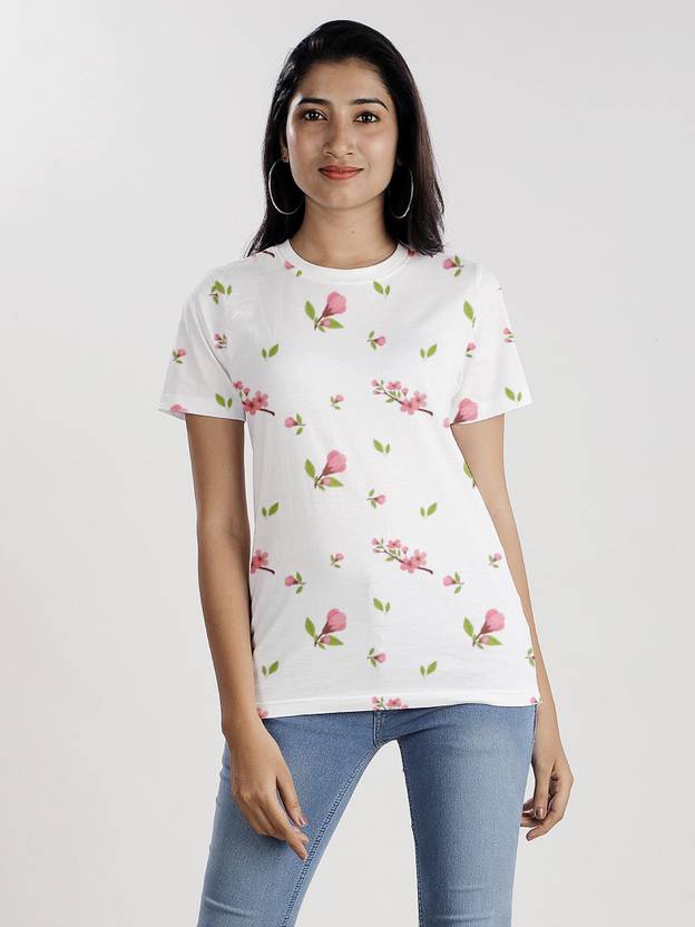 Mezmoda Women Floral Print Round Neck Polyester White T-Shirt