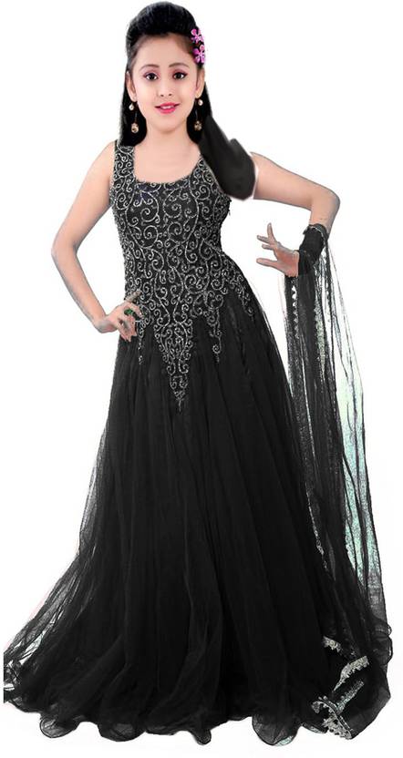 MF Retail Embroidered Net Semi Stitched Flared/A-line Gown  (Black)