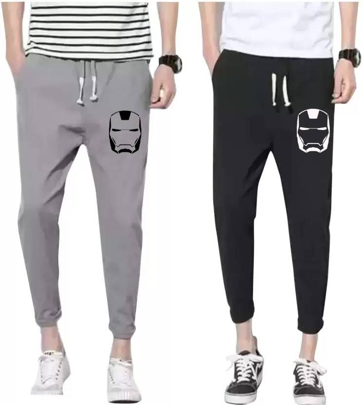 mfb Pack of 2 Men Graphic Print Black, Grey Track Pants