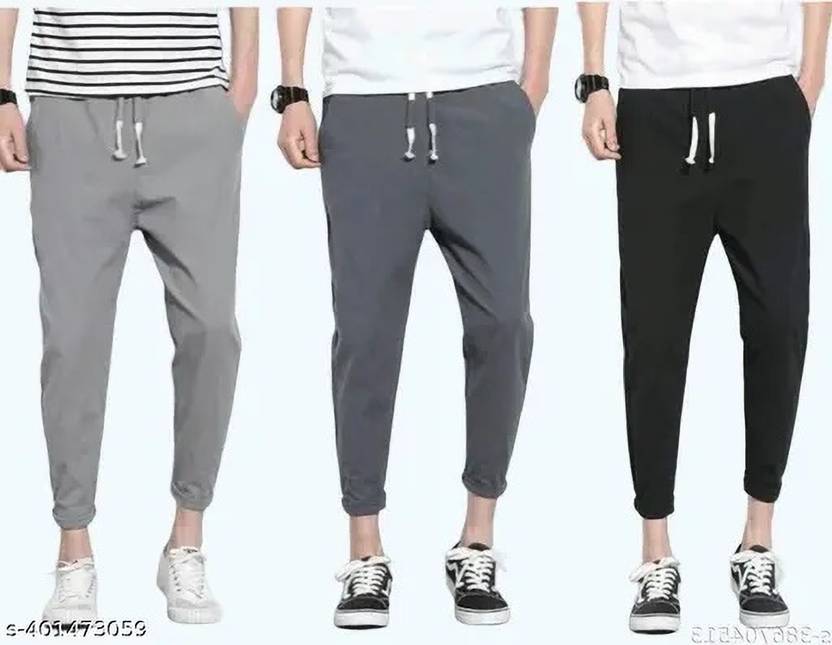 Pack of 3 Men Solid Black, Grey Track Pants