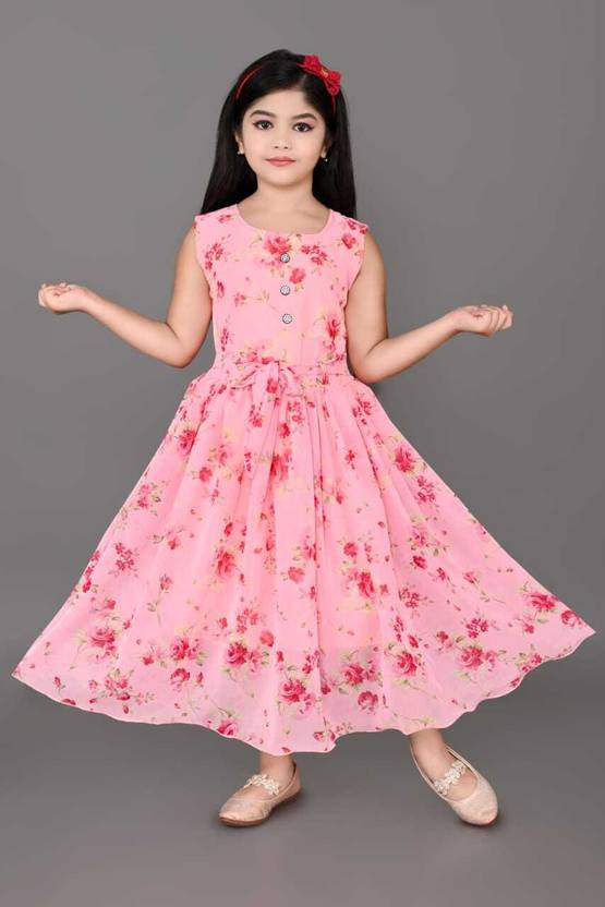 MFLF Girls Maxi/Full Length Festive/Wedding Dress (Pink, Sleeveless)