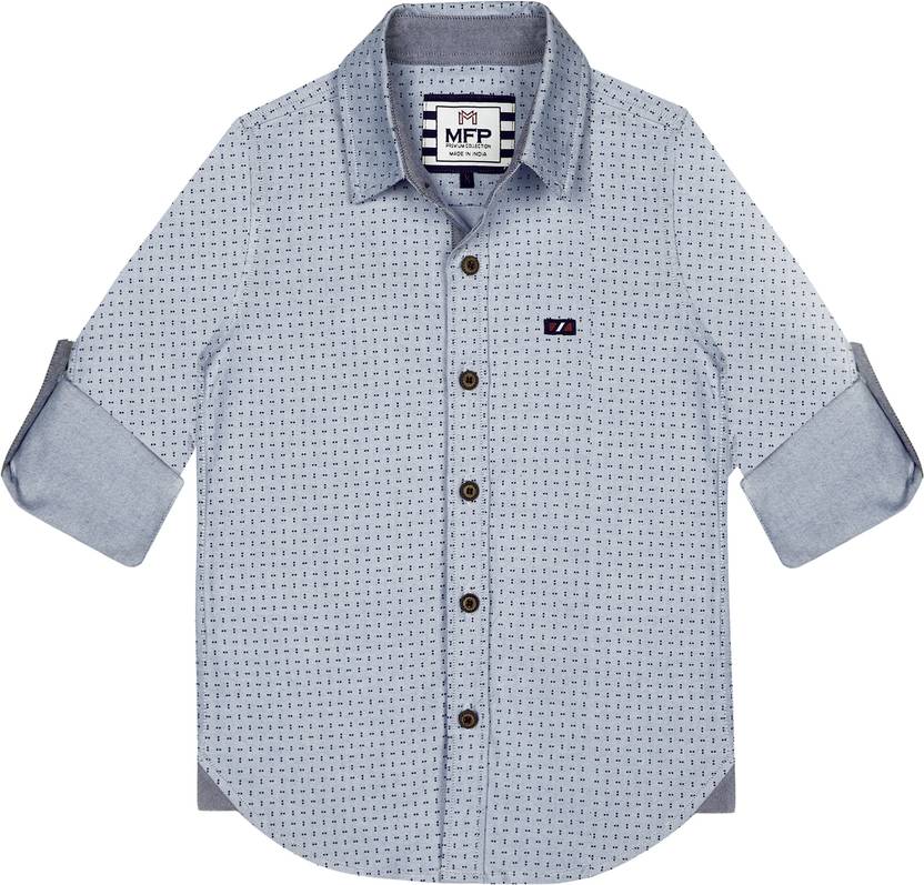 Boys Regular Fit Polka Print Spread Collar Casual Shirt