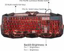 MFTEK Backlit Gaming Keyboard and Wired Gaming Mouse Gaming Keyboard Functions: LED Backlit,Adjustable Colors, Breathing Effect, 114 Keys keyboard with 10 multimedia control keys, allow you easily access the music and email during intense gaming Supports 19 keys without conflict, each keys is controlled by a separate switch, bring you new peculiar experience Durable ABS material, U-shaped key caps, double shot injection mold keycaps that it won’t worn easily even for years Gaming Mouse Function: The length of the cable: 60 inch/150cm Voltage: 5V Current: ?100mA Adjustable DPI: 800, 1200, 1600, 2000 LED Color: Red, Purple, Blue, Rose 7 Button: Click, Menu, Scroll Wheel, Forward, Backward, DPI Button, Fire Button Key Life: 5 Million Times 3 Colors Adjustable Lighted Gaming Keyboard: FN+SL: Backlight switch(red/blue/purple) Fn+PS: Enter 3 color auto-changing mode Fn+PB: Enter 1 color breathing mode Fn+Up/Down: Adjust the brightness: 0%, 33%, 66%, 100% Compatibility System: This Keyboard Mouse combo support USB Interface, plug and play, no driver needed ; Support system: Win7/Win8/Win10/XP/Vista. Package Included 1 * Wired Gaming Keyboard 1 * Ergonomic Gaming Mouse 1 * Gaming Mouse pad