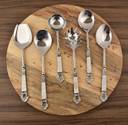 MFU-MADE FOR YOU Designer Serving Spoon Set Golden & Silver Feather Antique Handle Design Brass Serving Spoon Set (Pack of 6)