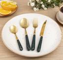 MGeezz Golden Big Spoons Set with Green Ceramic Handle Dinner table Serving Spoon Stainless Steel, Ceramic Serving Spoon, Tea Spoon, Table Spoon Set (Pack of 6)